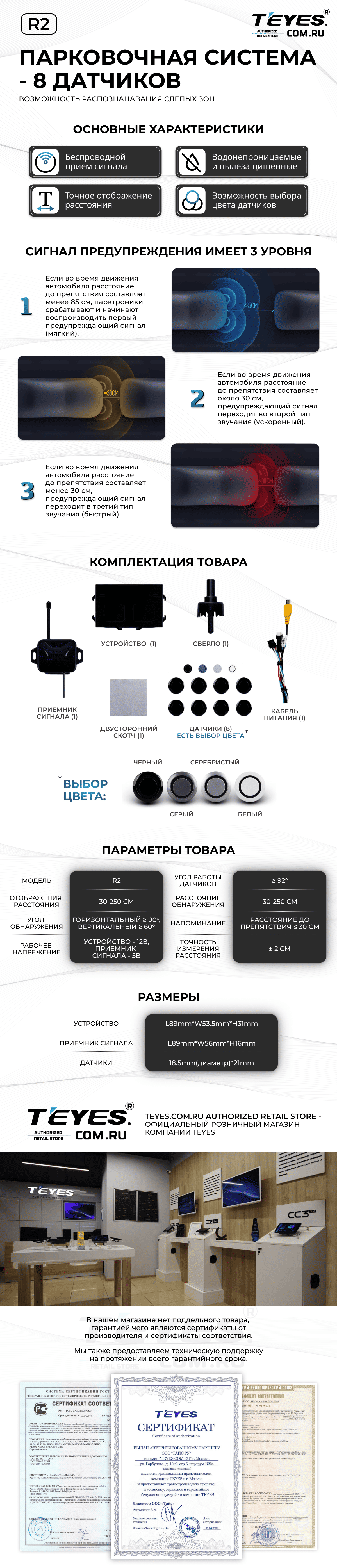 Передние и задние парктроники Teyes R2 для CC4 Pro / CC4 / CC4L / CC3 2K / CC3 / CC3L / CC2 Plus / SPRO Plus / TPRO2 / LUX ONE (Серебристые) 8-датчиков - купить всего за 19 900 руб. в интернет-магазине в Вологде Teyes.com.ru. ✓ Самый лучший выбор мультимедиа ✓ Лучшая замена штатному ГУ ✓ Тел. +7 (800) 775-31-74