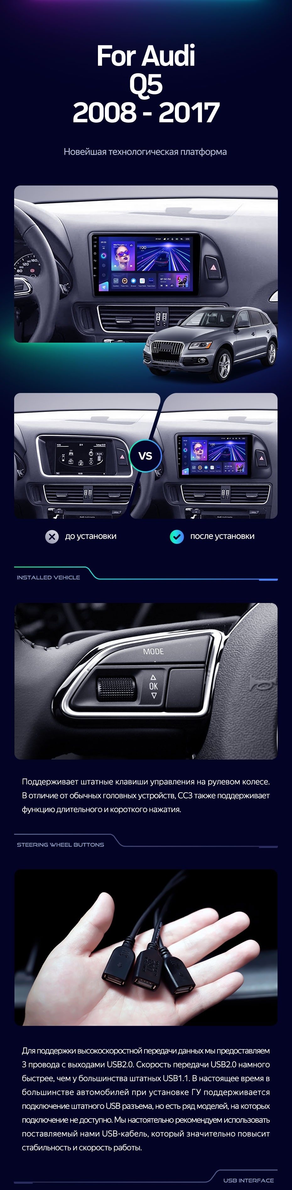 Штатная магнитола Teyes CC3 4/32 Audi Q5 8R (2008-2017) Тип-B - купить всего за 37 300 руб. в интернет-магазине в Вологде Teyes.com.ru. ✓ Самый лучший выбор мультимедиа ✓ Лучшая замена штатному ГУ ✓ Тел. +7 (800) 775-31-74