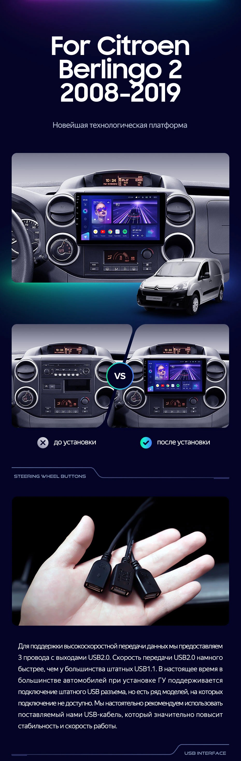 Штатная магнитола Teyes CC3L 4/32 Citroen Berlingo 2 B9 (2008-2019) - купить всего за 28 900 руб. в интернет-магазине в Вологде Teyes.com.ru. ✓ Самый лучший выбор мультимедиа ✓ Лучшая замена штатному ГУ ✓ Тел. +7 (800) 775-31-74
