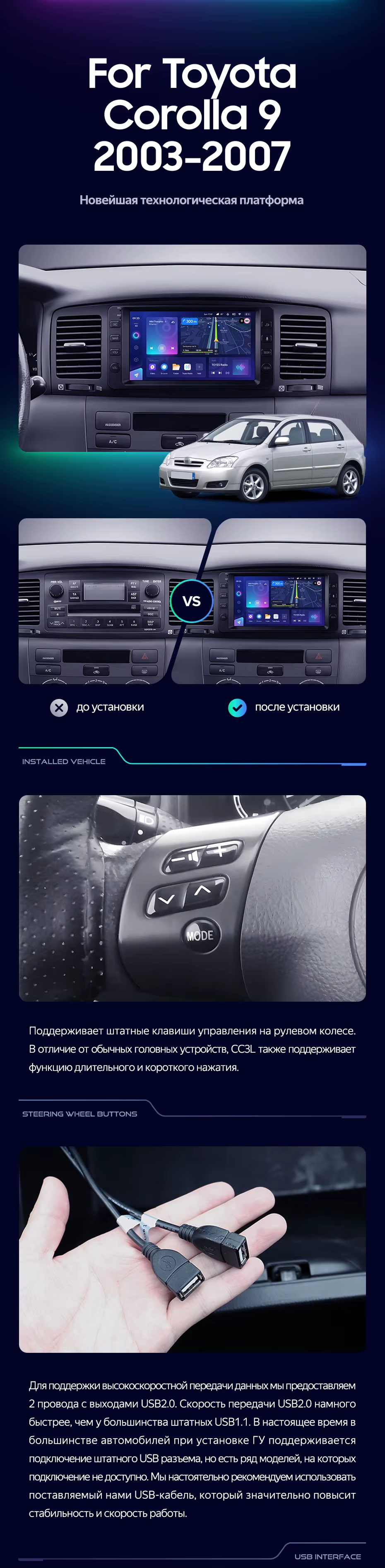 Штатная магнитола Teyes CC3L 4/32 Toyota Corolla 9 E120 E130 (2003-2007) 7" - купить всего за 28 300 руб. в интернет-магазине в Вологде Teyes.com.ru. ✓ Самый лучший выбор мультимедиа ✓ Лучшая замена штатному ГУ ✓ Тел. +7 (800) 775-31-74