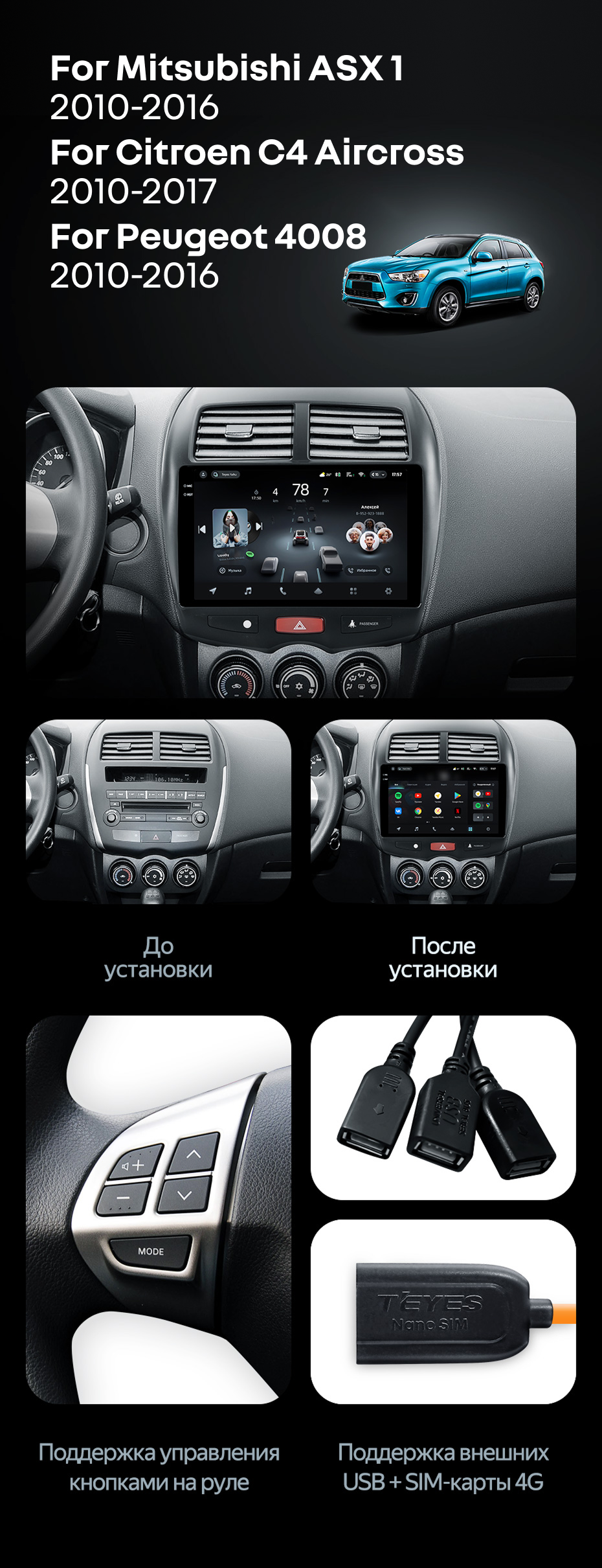 Штатная магнитола Teyes CC3L 4/64 Citroen C4 Aircross (2010-2017) Тип-B - купить всего за 31 100 руб. в интернет-магазине в Вологде Teyes.com.ru. ✓ Самый лучший выбор мультимедиа ✓ Лучшая замена штатному ГУ ✓ Тел. +7 (800) 775-31-74