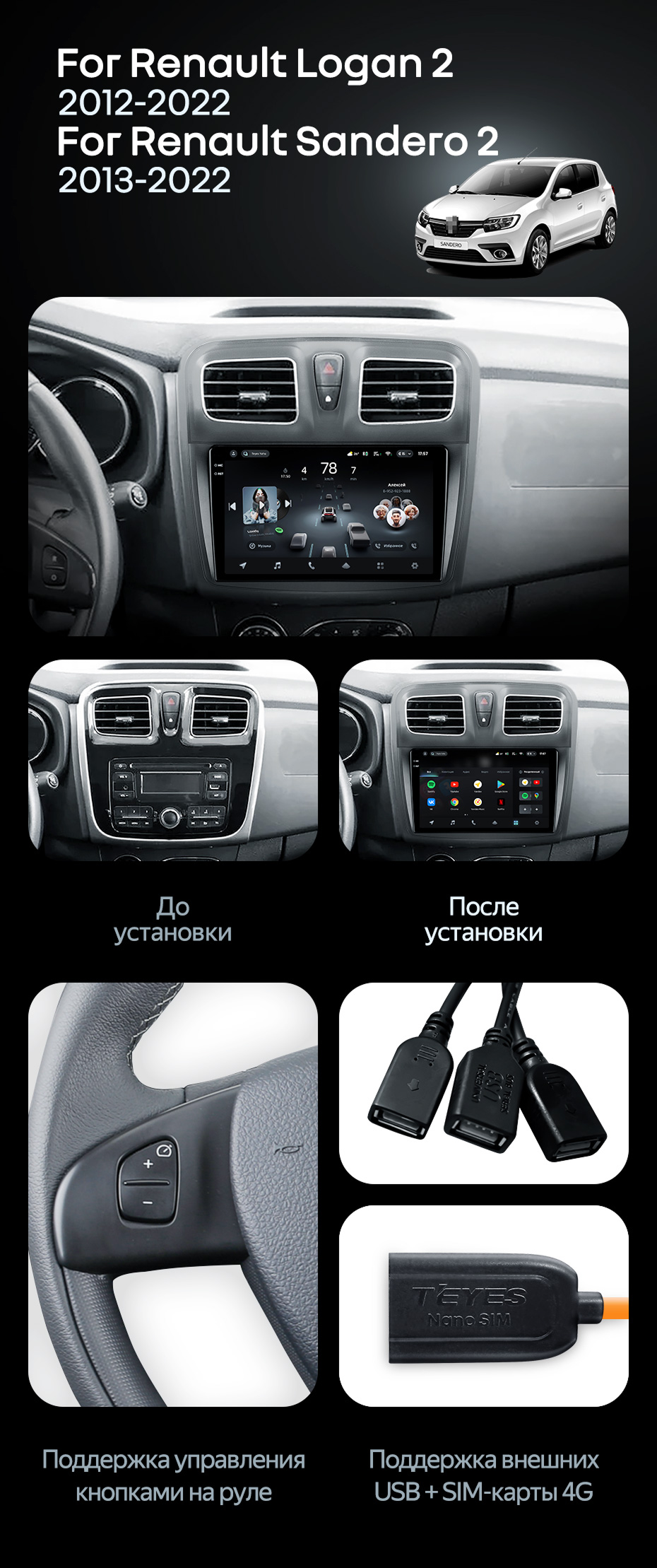 Штатная магнитола Teyes CC4 8/128 Renault Logan 2 (2012-2022) F2 - купить всего за 47 700 руб. в интернет-магазине в Вологде Teyes.com.ru. ✓ Самый лучший выбор мультимедиа ✓ Лучшая замена штатному ГУ ✓ Тел. +7 (800) 775-31-74