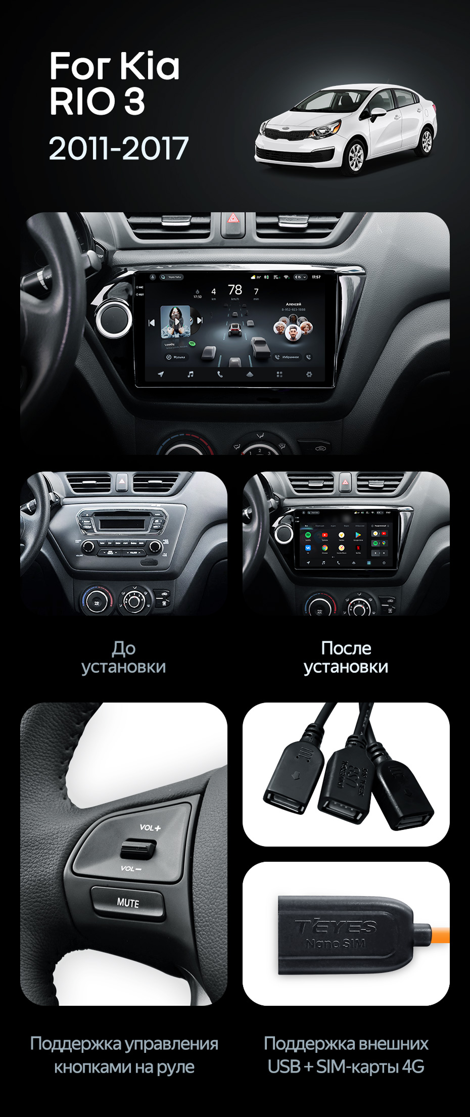 Штатная магнитола Teyes CC4 Pro 12/256 Kia Rio 3 (2011-2017) - купить всего за 68 800 руб. в интернет-магазине в Вологде Teyes.com.ru. ✓ Самый лучший выбор мультимедиа ✓ Лучшая замена штатному ГУ ✓ Тел. +7 (800) 775-31-74