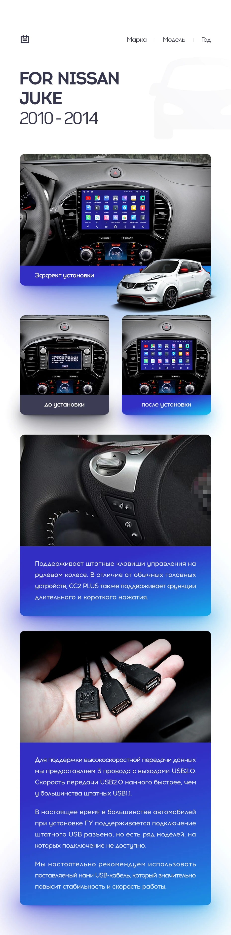Полный комплект установки магнитолы Teyes с рамкой и проводкой можно выбрать в каталоге штатных магнитол Nissan Juke (2010-2014).