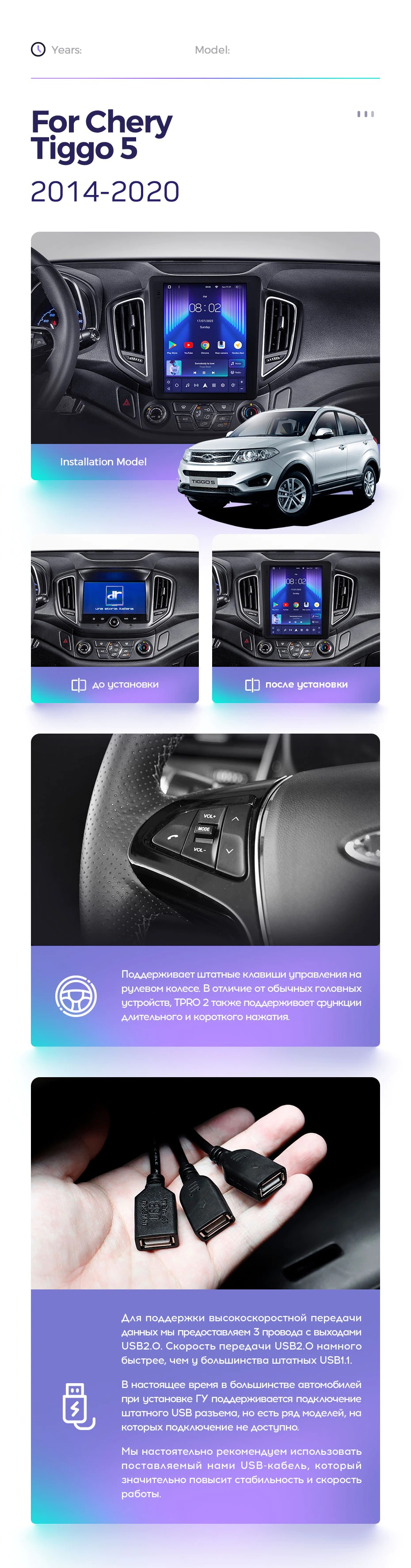 Полный комплект установки магнитолы Teyes с рамкой и проводкой можно выбрать в каталоге штатных магнитол Chery Tiggo 5 2014-2020.